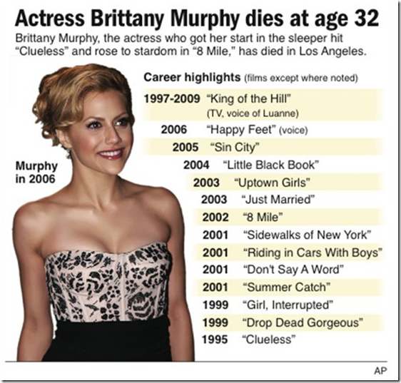 The reports after Brittany Murphy passed concluded that she took precription medicines and was vomiting before she was taken to the Cedars Sinai hospital. The 32 year old Clueless actress had flu like symptoms prior to the unfortunate episode yesterday. According to TMZ, one eyewitness reported that: "There were a lot ... a lot of prescriptions in the house".